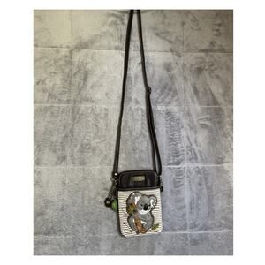 Chala Crossbody Cellphone Purse Handbag Brown Koala Flower Leaf Charm Adjustable