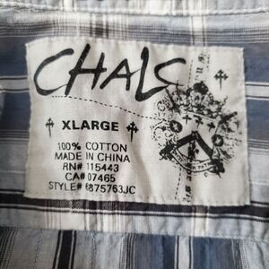 Chalc Western Shirt Plaid Blue And Black Button Up Size XL Pearl Snap Pockets