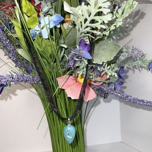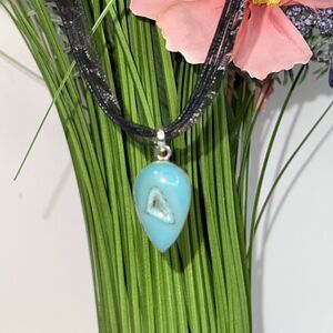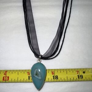 Chalcedony Druzy Necklace Set In 925 Silver Ribbon & Cord Turquoise Colored