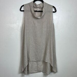Chalet Beige Sleeveless Hi-Low Hem Cowl Neck Tunic Top Size L