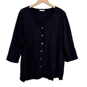 Chalet Black Button Front 3/4 Sleeve Top Sz L