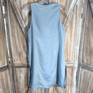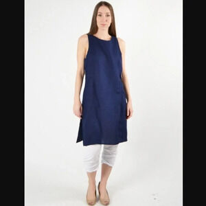 A linen tunic / dress is stunningly simple in an A-line silhouette with tank straps, rounded neckline and clean princess seams down the front bodice.