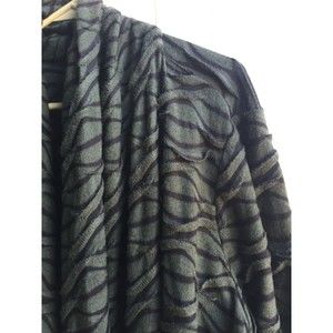 This is a sweater from Chalet with a gorgeous green and black patterned textured fabric in a super soft rayon. It can be worn either open waterfall draping style or there is a button that can secure the 2 panels crossed over the front. Cute versatile piece. Acrylic Rayon blend. Brand new with Tags! MSRP $95