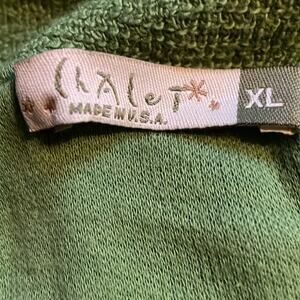 Green Knit Crop Jacket with Flower Accent. Chest 22” and Length 26”.
