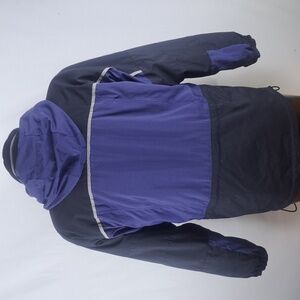 Chalet Ski Wear removable fleece linned multi pocket zipper vented sleeves XL black & blue full zipper & snap coat jacket is in good shape w normal wear. The main zip tap is missing part of the tab that is pictured.