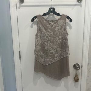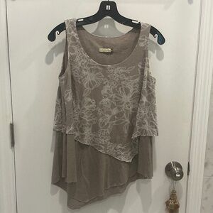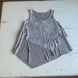 Chalet Sleeveless Asymmetric Hem burnout overlay Tank Top Gray Cotton Blend XS