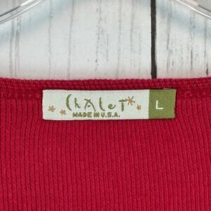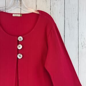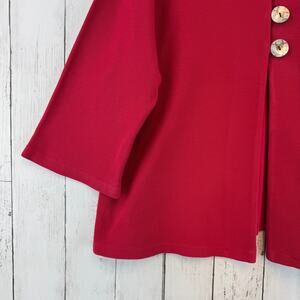 Chalet et Ceci Red Cotton Knit 3/4 Sleeve Boxy Cardigan Sweater USA Size Large