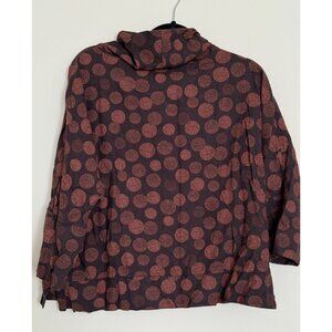 Excellent condition. Chalet et Cici Women's Cotton Blend Red and Black Polka Dot Cowl neck Top Size M. Length 24in, pit to pit 27in, sleeve length 11in.