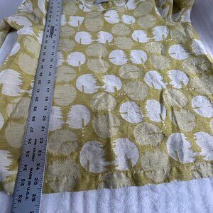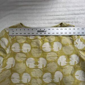 Chalet et ceci Womens Button-Back Blouse Large Linen/Cotton Circle Print Yellow
