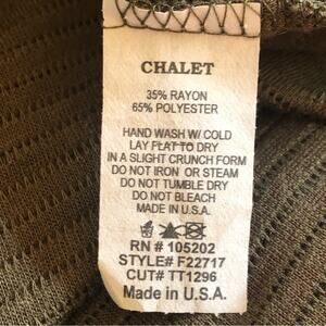 Chalet top sz XL olive green, raglan sleeves, curved hi low hemline