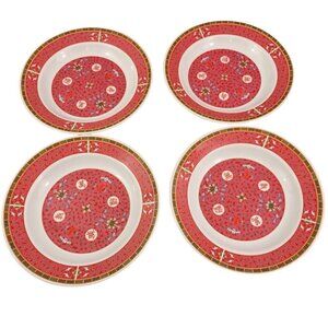 Chalice Melamine Red Geometric Asian Design Pattern Soup Salad Bowls – Set of 4