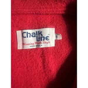 The Chalk Line Vtg Sweater is a classic men's pullover sweater in red, featuring a lined interior for comfort. Made by the brand Chalk Line, this sweater is in size S and is designed for regular fit. Perfect for adding a pop of color to any outfit, this vintage sweater exudes timeless style and quality craftsmanship.