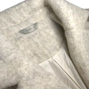 The Chalk Women's Winter Coat in Ivory is a stylish and cozy outerwear option for the colder seasons. Made from wool with a polyester lining, this long sleeve coat features a relaxed fit and is designed for casual occasions. The heavyweight coat is perfect for winter and includes an open front for added versatility. With its solid pattern and basic jacket style, this one-size coat from Chalk is a fashionable and practical addition to any woman's wardrobe.