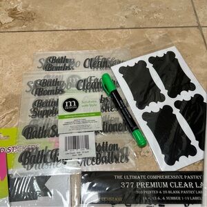 Brand new lot of adhesive chalk stickers, chalk pens, and organization labels. Perfect for organizing any room in your house!