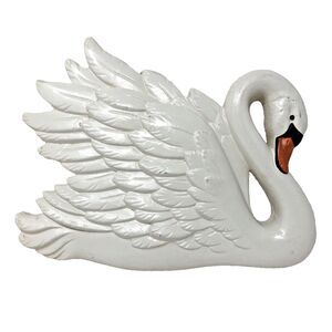 Chalkware Swan Wall decor Plaque Vintage 1996 Hobbyist Craft Handmade Kitschy