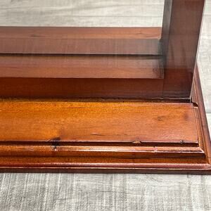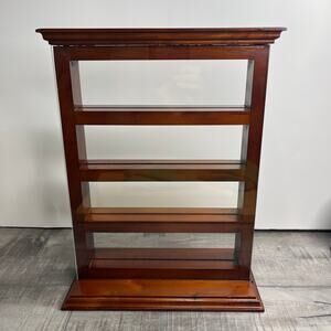 Nice challenge coin wood display shelf in a redwood finish. Holds approximately 3-4 coins per shelf and has acrylic front and back sliding panes. Measures approximately 13x9x5 inches. The coin shelves are approximately 1.75 inches deep.