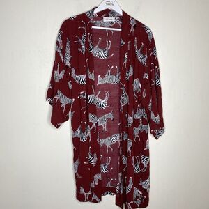 Chalmers Maroon Zebra Animal Pattern Open Kimono Robe Viscose Size S/M