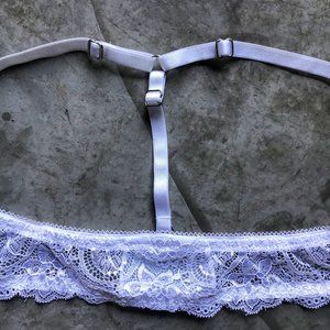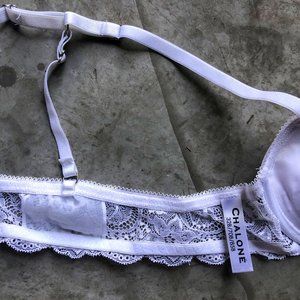Chalone white lace sides racerback front close padded push up tshirt bra Sz 32B