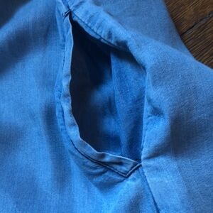 Relaxed Shirtdress with pockets for your essentials. Belt flatters your waist while preserving the comfy California cool popover style. Great for the office or lunch with the family. Pre-loved, may be minor wear to fabric. Size XS.
