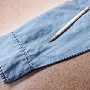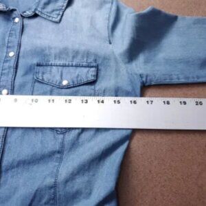 Chambray Button Up Shirt Womens XS Blue Medium Wash Pearl Snaps Fitted Western