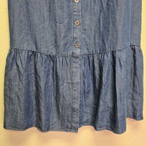 Chambray Cottagecore Boho Country Button-Down Denim Maxi Skirt Ruffle Hem L