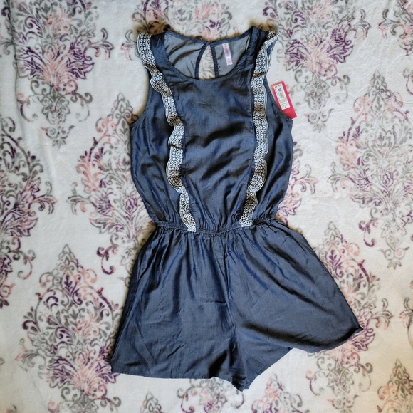 NWT. Romper with ruffles and keyhole closure in back.