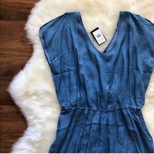 Super cute and comfy, everything you want to be on a daily basis. V neck. Elastic waist. Keyhole back with button closure. Banded trim.