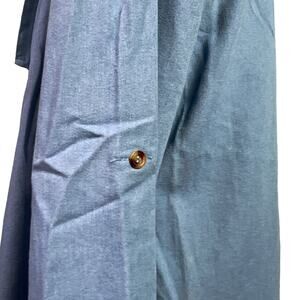 Chambray Waterfall Cardigan XL Blue Asymmetrical Open Front Roll Tab Sweater XL