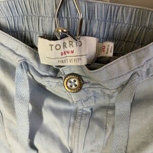 Chambray denim shorts with elastic waist and drawstring waist. Size 20. No stains. Good used condition. Very soft.