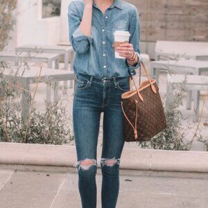 You can base your entire personality around a good chambray/denim shirt like this one! Wear it with skirts, with more denim, under blazers, over a sundress... it's the perfect "neutral" for a yee-haw summer.