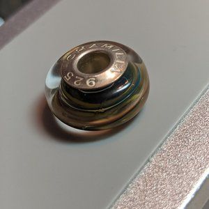Gorgeous Chamelia glass charm with silver core. Reminiscent of a desert storm. Blue, gold with traces of silver. Approximately 1/2" diameter. Fits Pandora snake chain silver bracelet and Chamelia snake chain bracelet.