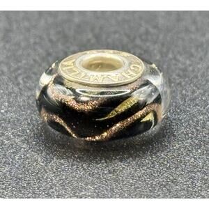 Chamilia Sterling Silver Shimmering Pink, Black, Gold Murano Charm #2 P19