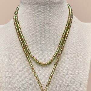 Champagne Bronze Beaded with Aurora Borealis Accents Slip-On Strand Long 30" Necklace with 5" Tassel