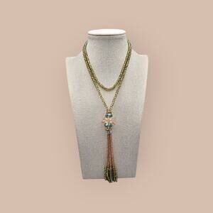 Champagne Beaded with Borealis Accents Long 3Necklace with Tassel