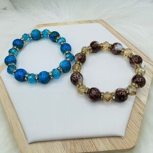 Champagne Brown Glass Bracelet and Blue earth Glass Beaded Bracelet Set