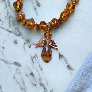 Champagne Color Crystal Angel Charm Beaded Stretch Gold Tone Bracelet NWT