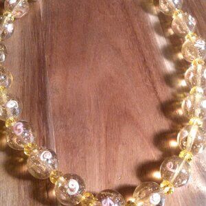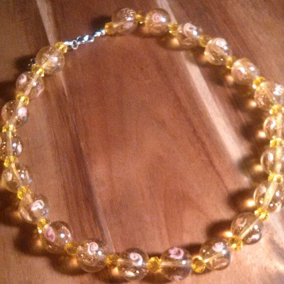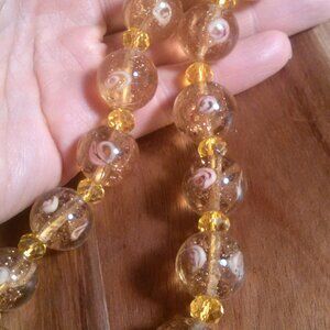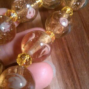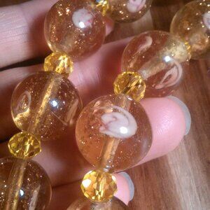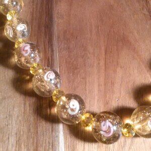 This handcrafted necklace features multifaceted sparkle with champagne color Murano glass and champagne glass beads. The necklace is set in silvertone and has an adjustable length of 20 to 22 inches. Brand new.