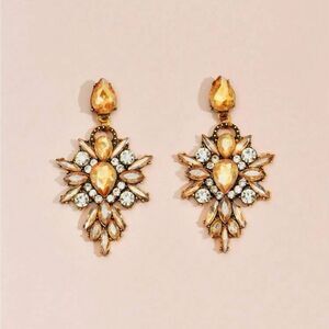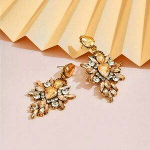 Champagne Color Rhinestone Drop Earrings fall vibes autumn colors harvest theme