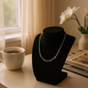 Step into a world of enchantment with this glass tennis necklace. Crafted with meticulous artistry, this captivating 20–22-inch gold toned necklace exudes an ethereal aura, reflecting an ever-changing kaleidoscope of colors. Allow the mystic allure of the glass beads to ignite your imagination and elevate your style to ethereal heights.