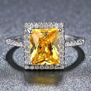 Champagne Cubic Zirconia Wedding White Gold Ring