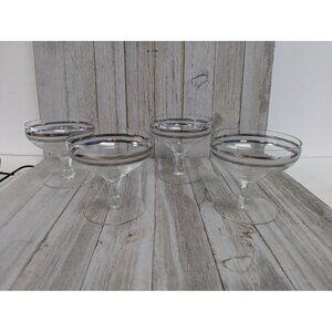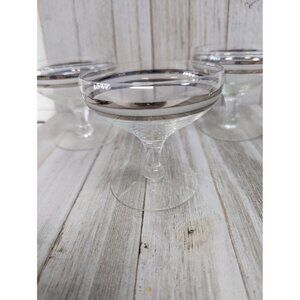 Champagne Glasses 3 3/8" Stemmed Set of 4 Silver Bands