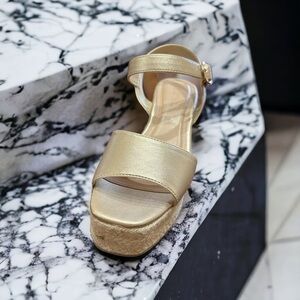 Champagne Gold JUST Fab Almost Friday Wedges Platform Sandals Size 8