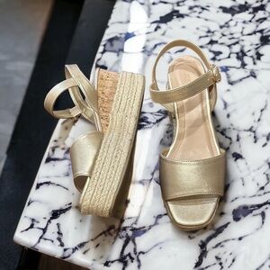 Just Fab Almost Friday Wedges platform sandals Champagne Gold Size 8