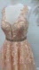 Last one. Was tried on but not worn. No damages but was on the rack. Size juniors XL. Material has a little give. Dress has pockets. Color: peach, champagne.