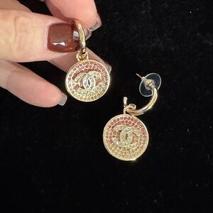 These beautiful circle hoops feature a soft champagne-to-pink gradient that sparkles with every move. The rhinestones are set in a luxe gold-tone frame, giving these earrings a dreamy, feminine glow that’s perfect for any occasion.