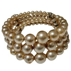 Champagne Pink Graduating Faux Pearl Three Strand Memory Wire Cuff Bracelet