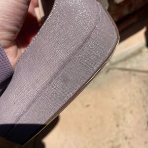 Close toe pumps with gorgeous rhinestones that are perfect for your next special occasion. I think they would look great with a black dress! The color is kind of between rose gold and silver! Lightly worn. Some minor scuffs.