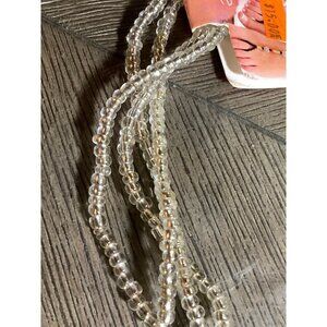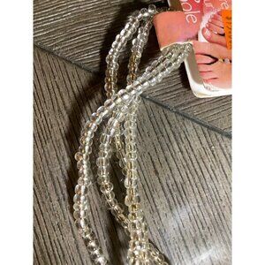Champagne Shell Sun Shells Size 7 - 8. High gloss clear and light amber beading with champagne beach shell spacer. Made with high quality elastic cording. US shoe size SM 5-6, MED 7-8 and LG 9 and up. Also check out our matching champagne shell bracelet. Model is wearing size Medium.