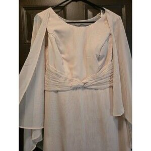 This Champagne Simple Mother of the Bride Dress features a zipper back and is made of chiffon material. The dress is in a size 6 and a beige color, perfect for a formal occasion like a wedding. Made in China, this elegant dress offers a sophisticated and chic style for the mother of the bride to wear on her daughter's special day.