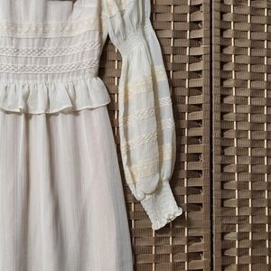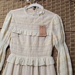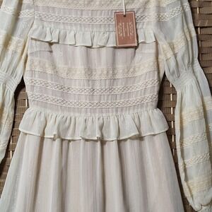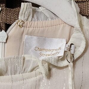 Champagne & Strawberry Dress Womens XS White Long Sleeve Ruffle Maxi Shimmer